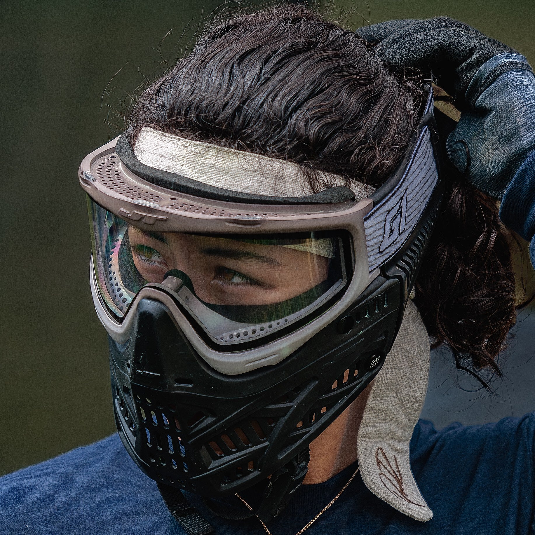 Paintball has evolved into a more dynamic and athletic sport in recent years. With this in mind, we set out to improve paintball headgear for safety, comfort, and performance. Our updated design incorporates fabrics commonly used in fitness and sports such as football and soccer, resulting in a flexible, breathable, and highly absorbent headwear.